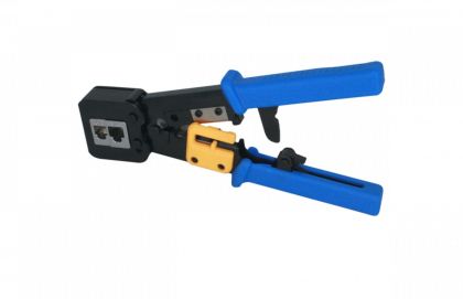 Pinza per connettori RJ11 e RJ45 Cat.5e UTP, Cat.6 UTPin tecnologia passante crimpa la terminazione e allo stesso tempo taglia i cavi a zero.La pinza ...